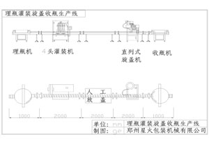 4頭理瓶-灌裝-人工放蓋直旋-收瓶生產(chǎn)線