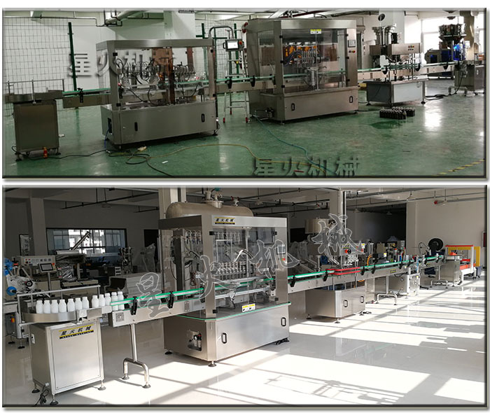 自動(dòng)洗潔精灌裝生產(chǎn)線星火實(shí)拍圖