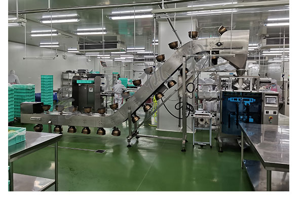 預制菜自動包裝機械設備的優(yōu)勢優(yōu)點如下:采用PLC控制一鍵調節(jié),8工位同時更改到位,整個過程僅需5秒。再將所更換的袋子放到各袋倉中,旋動手輪調整更換袋倉寬度,將后頂桿推至與袋同長輕松更換規(guī)格,不需要如同水平給袋機一樣動扳手從第一個工位調整到最后一個工位,解決了每天生產不同規(guī)格產品快速更換投產的問題。預制菜自動包裝機械設備采用整體鑄造,機夾在耐腐蝕的基礎之上,清洗更加方便。機夾用不銹鋼與夾皮的軟硬兩面設計可以承受5公斤拉力夾的住,避免了直線式給袋采用真空吸袋行進、在粉塵環(huán)境運轉中存在氣孔堵住或者氣源不足的情況導致袋于與物料脫落的現象。
