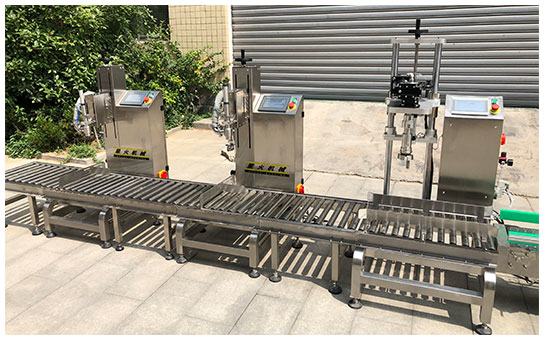 自動(dòng)稱(chēng)重式灌裝旋蓋生產(chǎn)線/桶裝稱(chēng)重灌裝線的工作流程:自動(dòng)稱(chēng)重式灌裝旋蓋生產(chǎn)線在高過(guò)大氣壓強(qiáng)的情形下開(kāi)展罐裝,也可分成二種:一種是貯液主缸的壓力與瓶?jī)?nèi)的工作壓力同樣,根據(jù)液態(tài)自身的凈重引入瓶?jī)?nèi),稱(chēng)之為隔熱保溫全過(guò)程罐裝;另一種是貯液主缸的工作壓力高過(guò)瓶?jī)?nèi)的工作壓力,液態(tài)根據(jù)壓力差引入瓶?jī)?nèi),這類(lèi)辦法多用以迅速生產(chǎn)流水線。