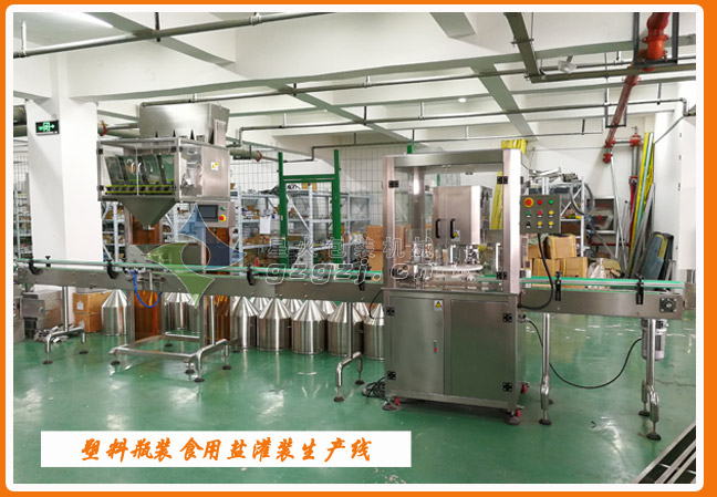 瓶裝食用鹽包裝生產(chǎn)線車(chē)間展示: